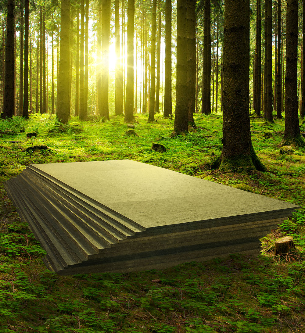 Hunton Vindtett™ er hovedsakelig laget av flis fra sagbruk i Innlandet. Tre er en fornybar ressurs, som hele tiden lagrer karbon når det brukes som materiale i bygg og boliger. Det er en av grunnene til at aktiv skog- og trebruk i flere stortingsmeldinger trekkes frem som et virkemiddel som kan bidra til å senke klimagassutslippene.