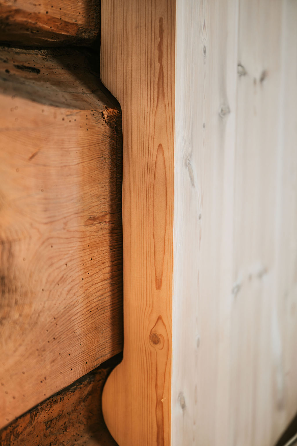 Innvendig er veggene kledd med furupanel. Det er et helt bevisst valg.