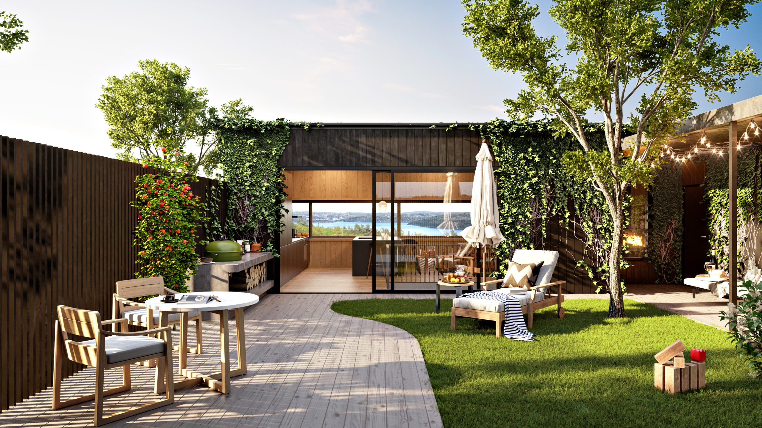 Blant de kommende boligene er elleve stilige atriumshus. Hvert av disse blir 156 kvadratmeter stort, hvor selve midtpunktet, atriumet, strekker seg over en 70 kvadratmeter stor og skjermet utendørs oase. Husenes konstruksjon og romløsning legger til rette for at det private uteområdet naturlig blir en del av hverdagsrommene.