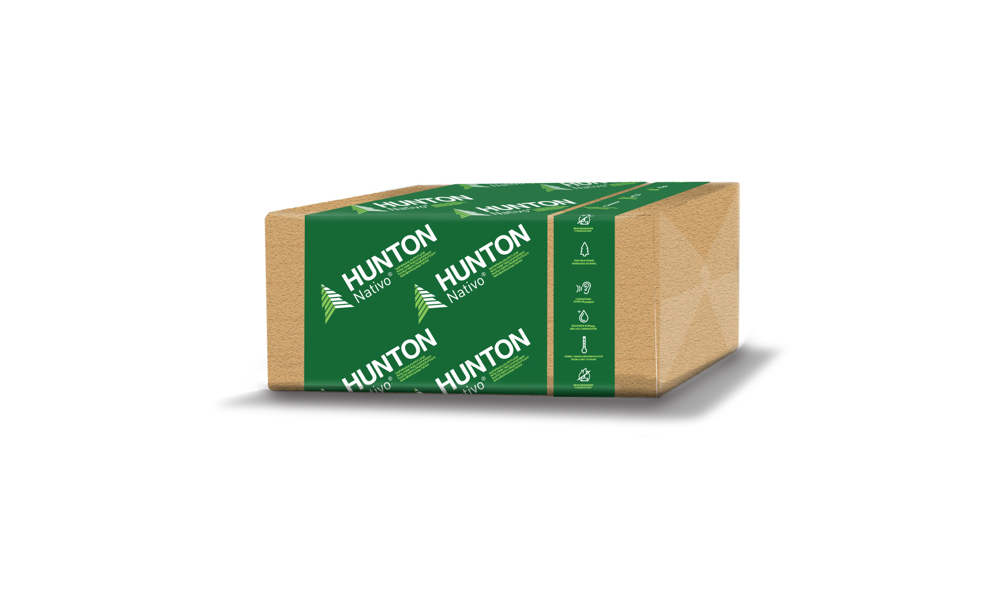 Nativo® Trefiberisolasjon kan brukes i både vegger, tak og gulv, og finnes både som formstabile plater og løs innblåst trefiber. Hunton investerer over 250 millioner kroner i en ny fabrikk på Gjøvik som skal stå ferdig i 2018. Der skal det produseres trefiberisolasjon på kortreiste råvarer og ren norsk energi.